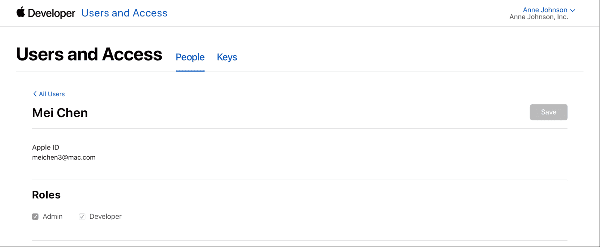 Usuários e acesso no App Store Connect