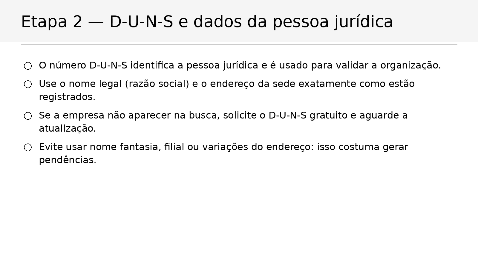Etapa 2 — D‑U‑N‑S e consistência dos dados da pessoa jurídica